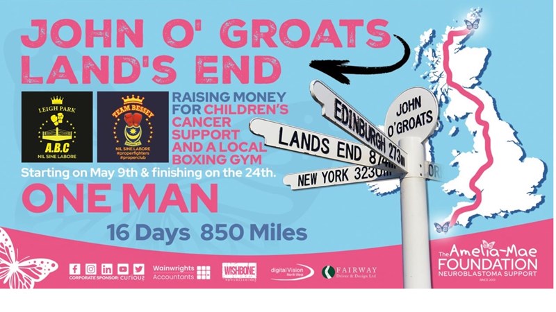 But that’s not enough for Charlie. His lifelong dream has been to run from John O’Groats to Land’s End — the length of the UK — covering around 850 miles. He will take on this incredible challenge starting on 9th May 2026 and will be raising funds for both the Amelia-Mae Foundation and his local boxing gym, Leigh Park, who have been instrumental in getting Charlie to this point.